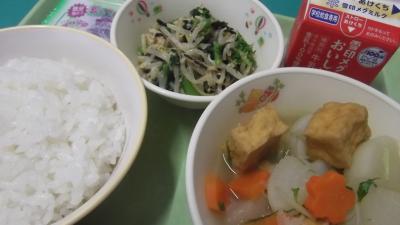 今日は、「だいこんと厚揚げの炊いたん」や「磯香あえ」などが出ました。