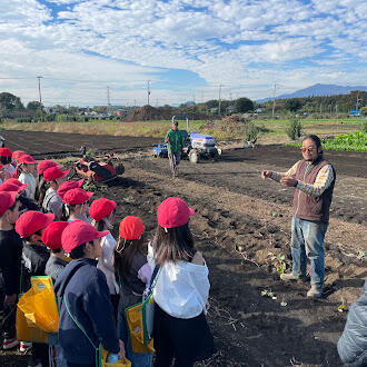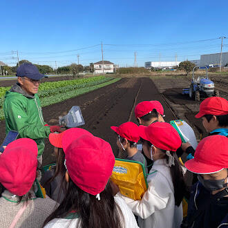今日の1・2校時目に、社会科の学習で給食のお野菜も作ってくださっている農家さんの畑に学習に出かけました。