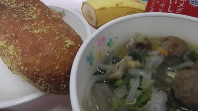 今日は、カレー揚げパン・ちゃんこ汁などが出ました。