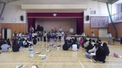 5校時目に、5ん延性が体育館で合奏の練習をしていました。