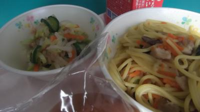 今日は、和風スパゲッティー、ツナサラダなどが出ました。