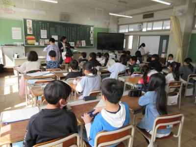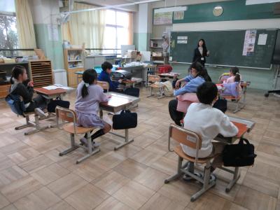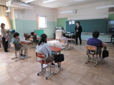その後、クラスの様子を見て回りましたが、新しいクラス・先生にちょっぴり緊張している姿や、先生の自己紹介に聞き入ったり、クイズをしたりじゃんけんをしたり、さっそく学校に置いていた道具を新しい教室に運ぶ作業をしていたりと、それぞれの学級開きが行われていました。