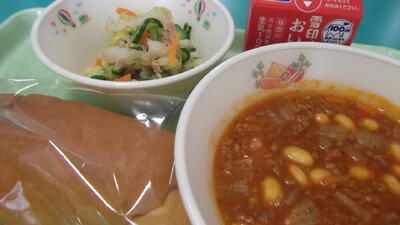 今日は、豆とひき肉のインド煮や白菜サラダなどが出ました。