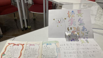 素敵なお手紙は、あんまり上手なので少しの間校長室前に掲示させてもらい、その後は宝物として大切に持っていたいと思います!